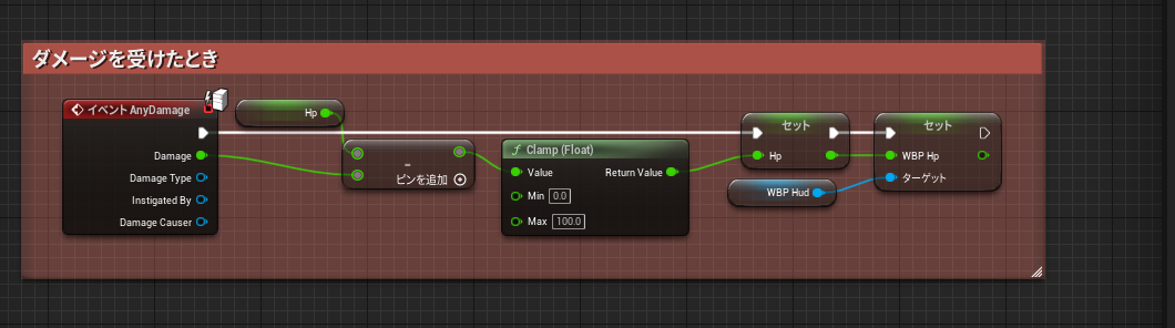 イベントグラフに戻ってLerpノードを使って画像のように組みましょう。